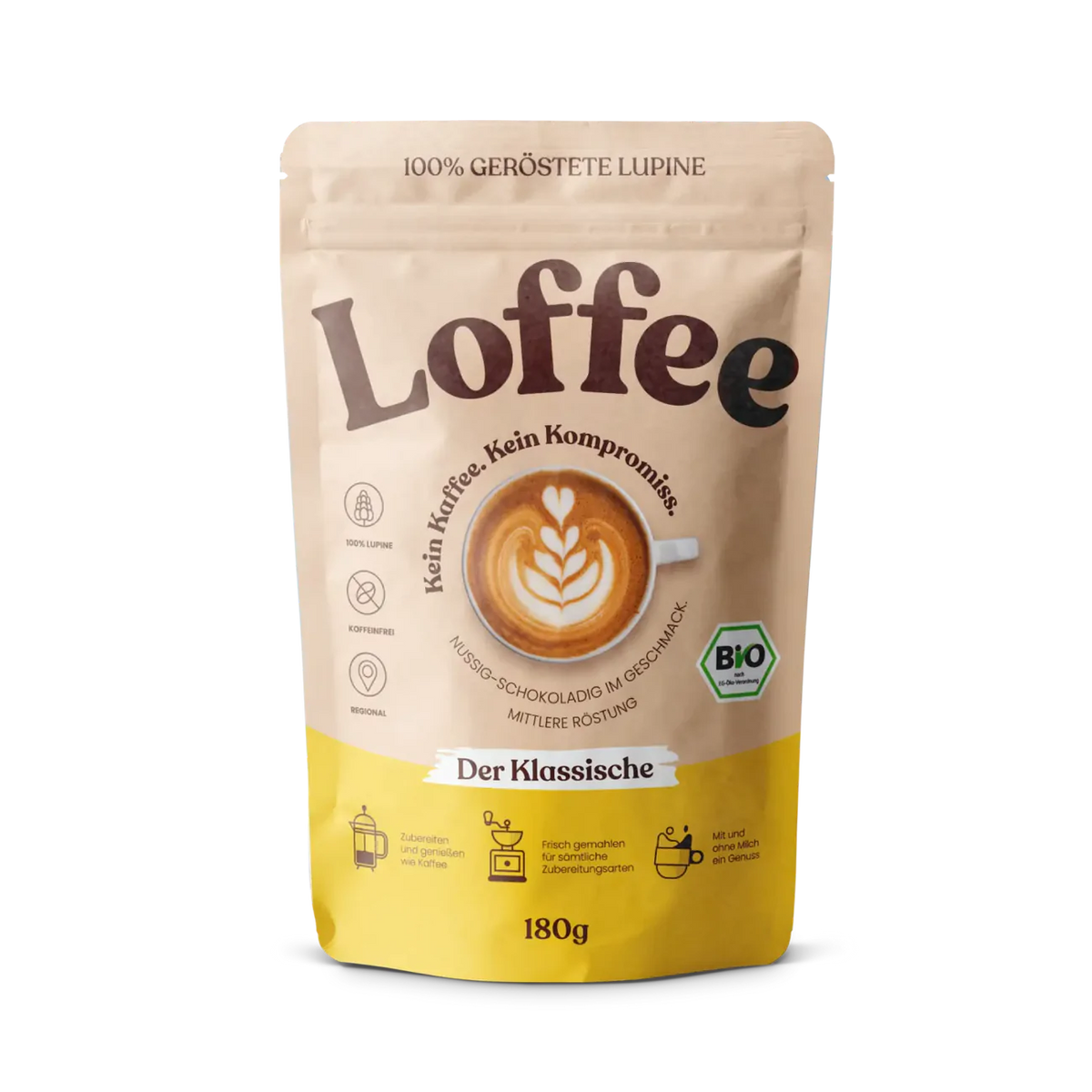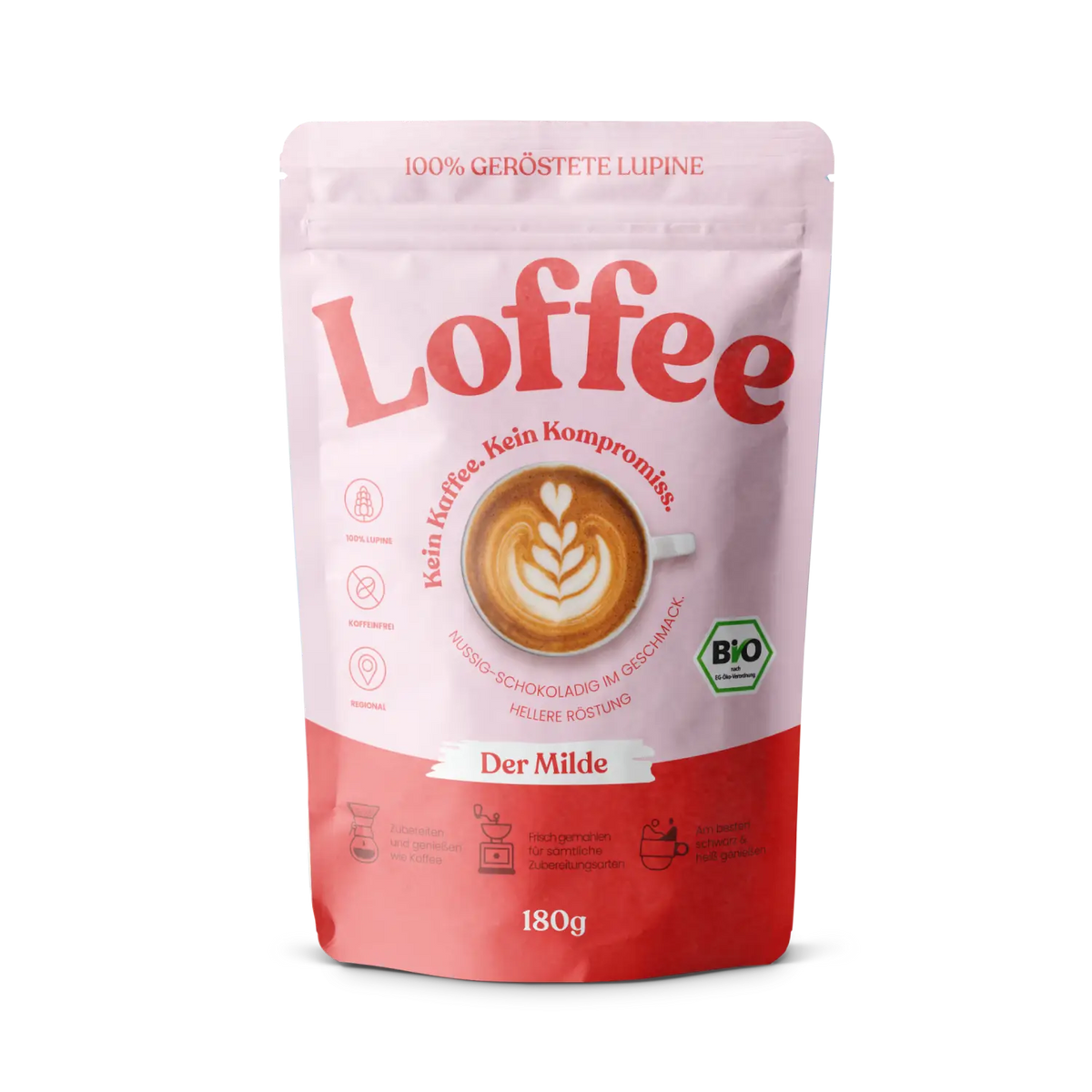 Loffee wird genau gleich zubereitet wie Kaffee. Er ist geeignet für den Filter, die French Press, die Mokka-Kanne, den Siebträger und auch für Vollautomaten (Kaffeemenge & Mahlgrad müssen reguliert werden können! Nicht jedes Modell ist geeignet).