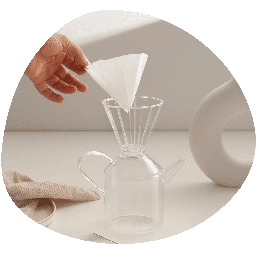 Verwende die Hario 01-Filter. In deiner Lieferung sind 40 Stück enthalten. Sollte dein Vorrat aufgebraucht sein, findest du Nachschub in unserem Shop.