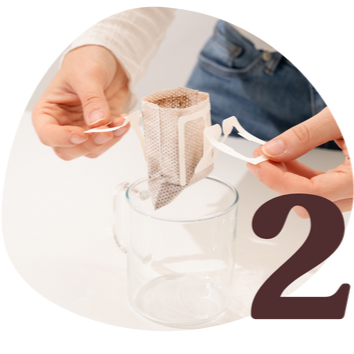 Papierhenkel ausklappen und auf den Tassenrand aufsetzen.
